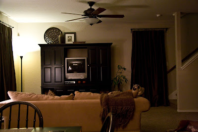 i am…so depressed. finally found the perfect piece at the pottery barn outlet to begin the right mess of junk on top of my entertainment unit…i was just starting to test stuff up there…thought i would take a picture since the family has been asking…was testing light on my camera & realized i needed to shut the unit’s doors…took this picture & went to SHUT the doors…